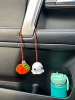 Introducing our enchantingly cute "Spooky Ghost & Pumpkin Car Buddy"! This charming handmade creation combines the whimsy of a pumpkin with the ethereal charm of a ghost, making it the perfect addition to your Halloween dΓ©cor or a delightful year-round companion.